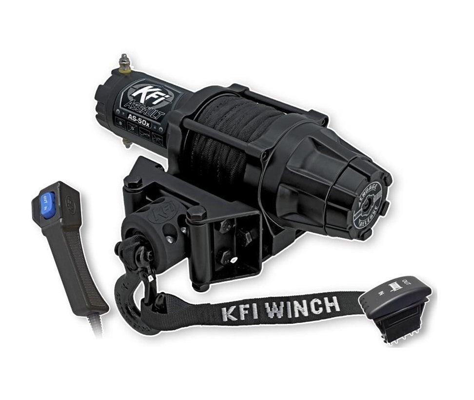 KFI Products 5000 Assault Series winches are available to equip your ATV, UTV, or Side x Side with plenty of pulling power. Offered in a choice of models, both have many features to keep you out of trouble off-road. Whether it's on a winding trail, plowing snow, or deep in the mud, KFI 5000 Assault winches are reliable and important accessories to have onboard to pull yourself out of any situation.