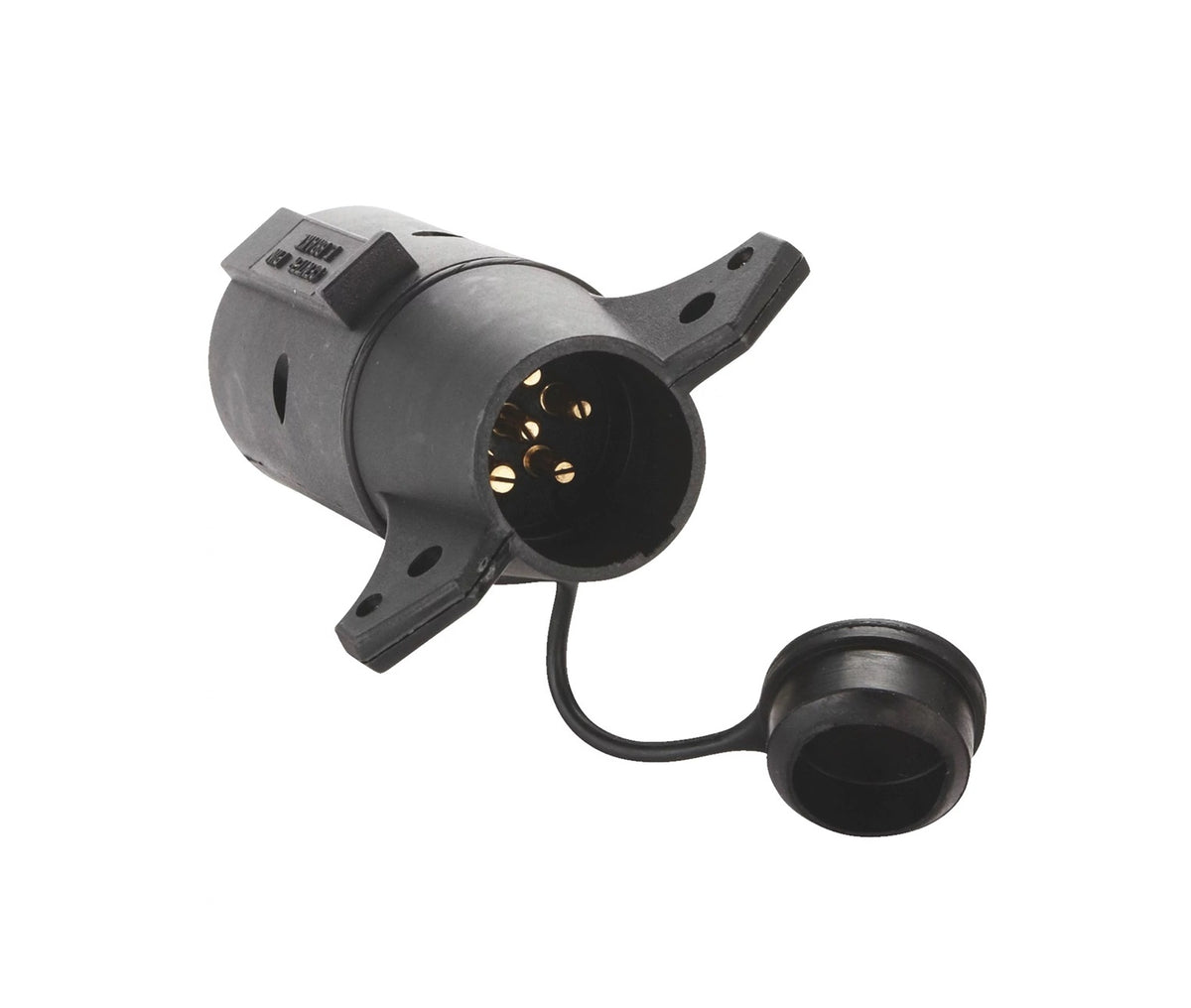 - Prewired vehicle to trailer wiring adapter adapts a 7-way RV blade to a 6-way round adapter