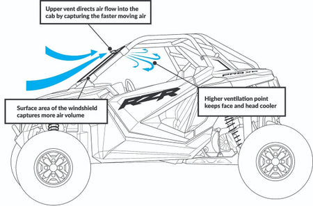 Is your PRO XP decked out for winter or summer? Why not both with SuperATV’s Vented Full Windshield for the Polaris RZR PRO XP. No matter what the forecast says, you can get out and ride. Rain, sleet, snow, dust, mud, cold, or hot, this windshield lets in the air you want and keeps out the crap you don’t. The large flip-up vent at the top of the windshield stays out of your line of site and is easy to open and close from your seat. The flip-up panel catches more air at the top of the windshield and secures using thumb screws that allow you to adjust the airflow to your liking. And it secures tightly to keep it in place through every bump and bounce.